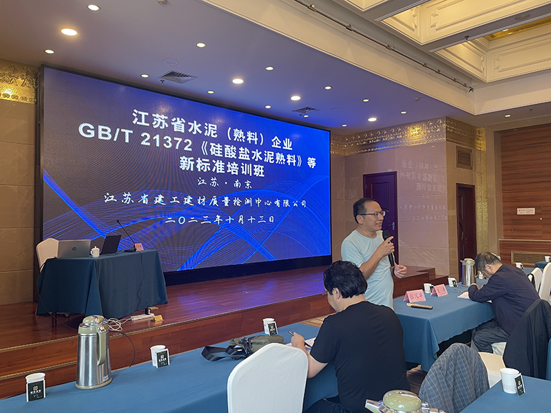 2023年10月13日,江蘇省建工建材質(zhì)量檢測中心有限公司(以下簡稱中心)在南京華江飯店舉辦“江蘇省水泥(熟料)生產(chǎn)企業(yè)GB/T21372《硅酸鹽水泥熟料》等新標(biāo)準(zhǔn)”培訓(xùn)班。中心特邀中國建筑材料研究院水泥所所長、新標(biāo)準(zhǔn)第一起草人肖忠明同志,為本次培訓(xùn)班授課。全省水泥(熟料)生產(chǎn)企業(yè)質(zhì)量負責(zé)人、化驗室主任等代表參加。