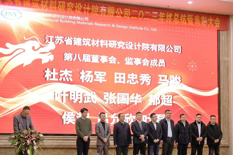 2024年1月24日下午,院公司2023年終總結(jié)暨表彰大會在華江飯店華江廳召開。江蘇中江國際投資有限公司董事長、總經(jīng)理、院公司董事楊軍,中江國際集團(tuán)黨委組織部(人力資源部)副部長、人力資源公司總經(jīng)理、院公司董事田忠秀,南京大學(xué)法學(xué)院黨委副書記、院公司獨立董事馬駿,國家市場監(jiān)管總局、住房和城鄉(xiāng)建設(shè)部、工業(yè)和信息化部夏熱冬冷地區(qū)綠色建材產(chǎn)品認(rèn)證技術(shù)委員會秘書長李安良,中江國際集團(tuán)審計部部長助理、院公司監(jiān)事侯超,院公司黨委書記、董事長、總經(jīng)理杜杰,院公司副總經(jīng)理葉明武、張國華,院公司總經(jīng)理助理郁超,院公司財務(wù)負(fù)責(zé)人陳立俠等領(lǐng)導(dǎo)、嘉賓及全體員工160余名出席大會。